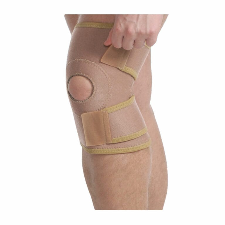 Επιγονατίδα με τρύπα one size κατασκευασμένη από υψηλής ποιότητας Aeroprene, υποαλλεργικό με εσωτερική βαμμβακερή εμένδυση, Προσφέρει ομοιόμορφη συμπίεση και καλή εφαρμογή. Κλείσιμο με velcro.