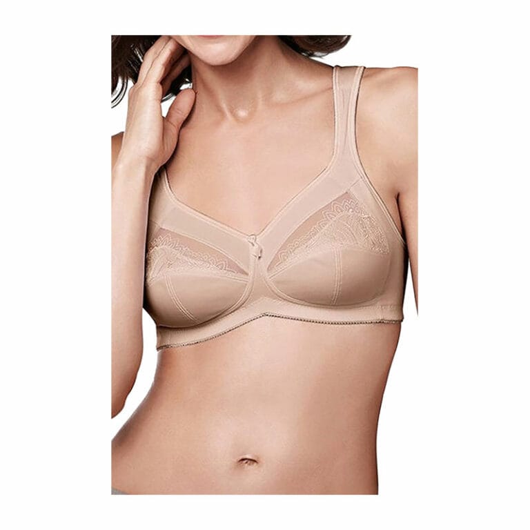 - Κομψός στηθόδεσμος, χωρίς μπανέλα, σε μπεζ χρώμα.
