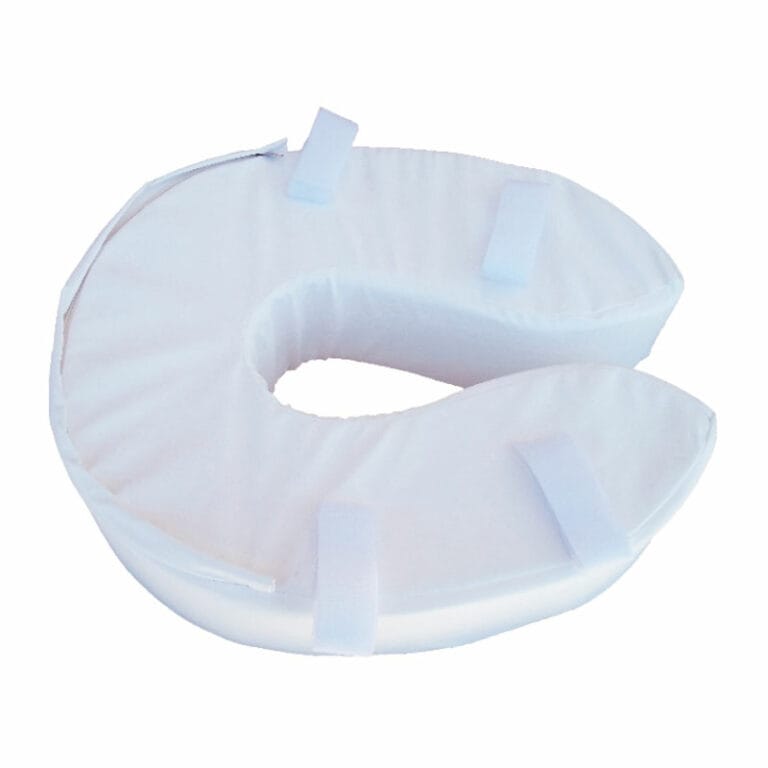 Μαλακό ανυψωτικό κάθισμα τουαλέτας με αφρώδες γέμιση και ιμάντες σκρατς για εύκολη τοποθέτηση στο καπάκι οποιασδήποτε τουαλέτας.