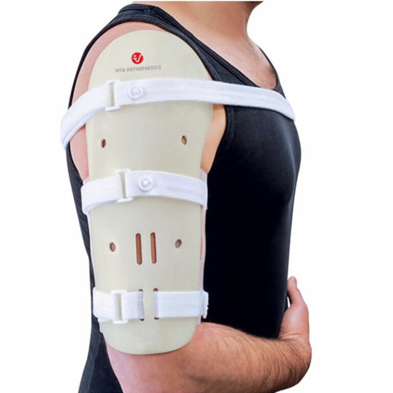 Κατασκευή από πολυπροπυλένιο, με εσωτερική υποαλλεργική αφρώδη επένδυση κλειστών κυψελίδων (plastazote). Η ακινητοποίηση του ώμου ελέγχεται με ρυθμιζόμενη τιράντα στήριξης, εγκάρσια του στέρνου, χωρίς περιορισμό της κινητικότητας των μυών. Η περιφερειακή συμπίεση του βραχιονίου επιτυγχάνεται με δυο αυτοκόλλητους σταθεροποιητικούς ιμάντες. Ο νάρθηκας επιτρέπει την κινητικότητα του αγκώνος. Στη συσκευασία περιλαμβάνονται δυο ελαστικές κάλτσες βραχιονίου. Η κάλτσα τοποθετείται πριν την εφαρμογή του νάρθηκα. Διαθέτει τιράντα ανάρτησης για τη στήριξη του αντιβραχίου.